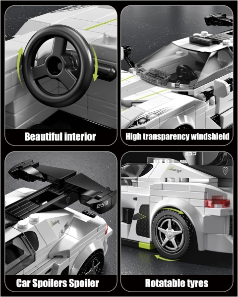 Конструктор гоночная машинка 335 деталей Racing Car Koenigsegg Jesko - это конструктор совместимый с конструктором ЛЕГО. Конструктор содержит все необходимое для сборки.