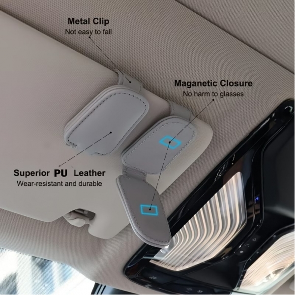 Устали искать очки в машине? Органайзер для очков с магнитной застежкой крепится прямо на солнцезащитный козырек, обеспечивая быстрый доступ к аксессуарам во время поездки. Изготовлен из эко-кожи и металла, не царапает линзы и сохраняет их в идеальном состоянии. Универсальный размер подходит для всех типов автомобилей. Просто закрепите — и забудьте о беспорядке в салоне.