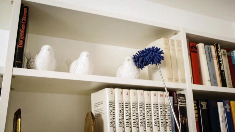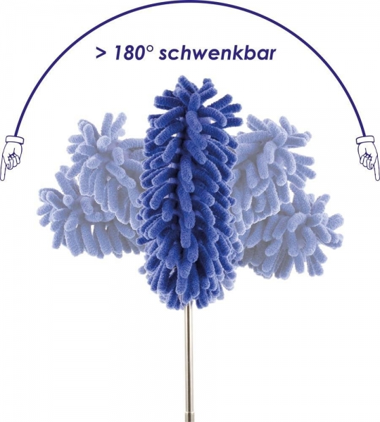 Щетка за счет электростатического притяжения хорошо справляется с мелким мусором и пылью в труднодоступных местах. Имеет удобную телескопическую ручку и хорошо гнется. Данной щеткой очень удобно убирать пыль на шкафах, полках, люстрах, кондиционерах. Уход за щеткой также очень прост – достаточно помыть под водой. Длинна ручки увеличивается от 26 см до 75 см.