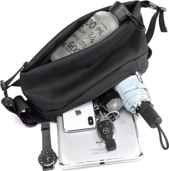 Baellery Body Bag JXA1808 — универсальная нагрудная сумка через плечо для города, путешествий и спортзала. Модель удачно совмещает компактность и вместительность: внутрь легко поместятся кошелёк, ключи, очки, документы, смартфон/планшет, пауэрбанк, кабели, наушники, а также бутылка воды, перекус или складной зонт. Дизайн унисекс: сумка одинаково стильно смотрится на мужчинах и женщинах и легко вписывается в любой образ — от casual до спорт-шика.